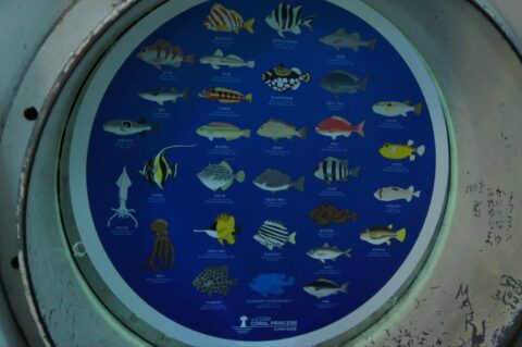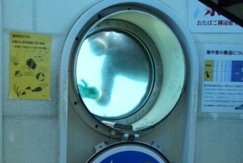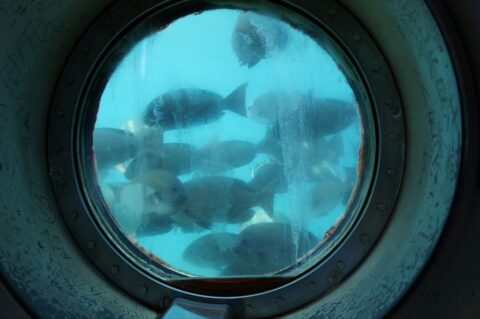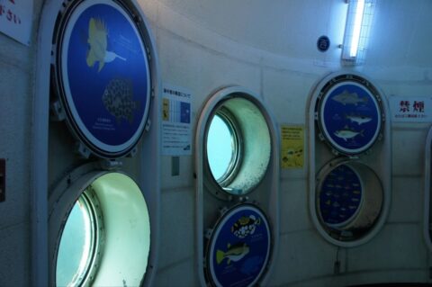 360度、12ヵ所に丸窓があり、チヌやグレなど約30種類の魚を見ることができます。