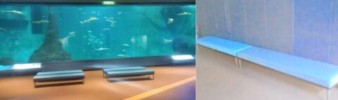 長椅子が大水槽前に4脚、壁側に2脚設置されています。