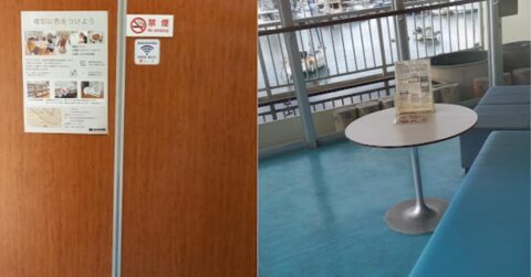 タッチングプール前にも、長椅子が1脚あり、その奥は休憩室です。