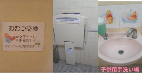 女子トイレと多目的トイレには、ベビーシートを設置してくれています。
