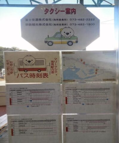 優しさその⑥タクシー案内とバスの時刻表が掲示されている