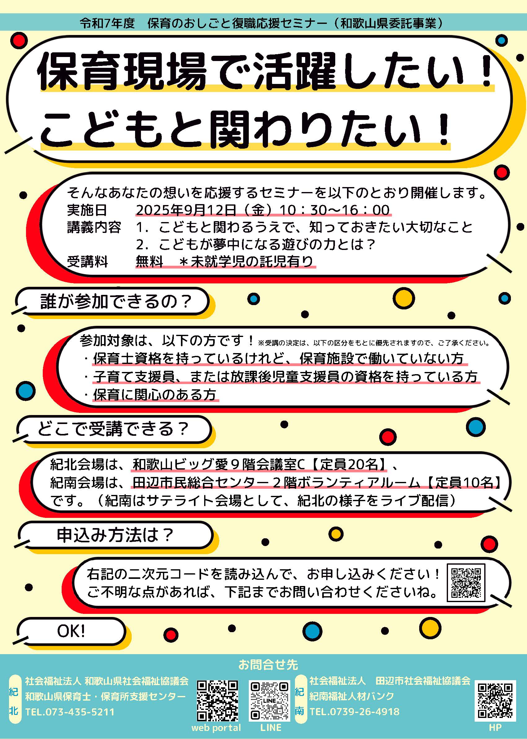 ★令和7年度 保育のおしごと復職応援セミナーのお知らせ★