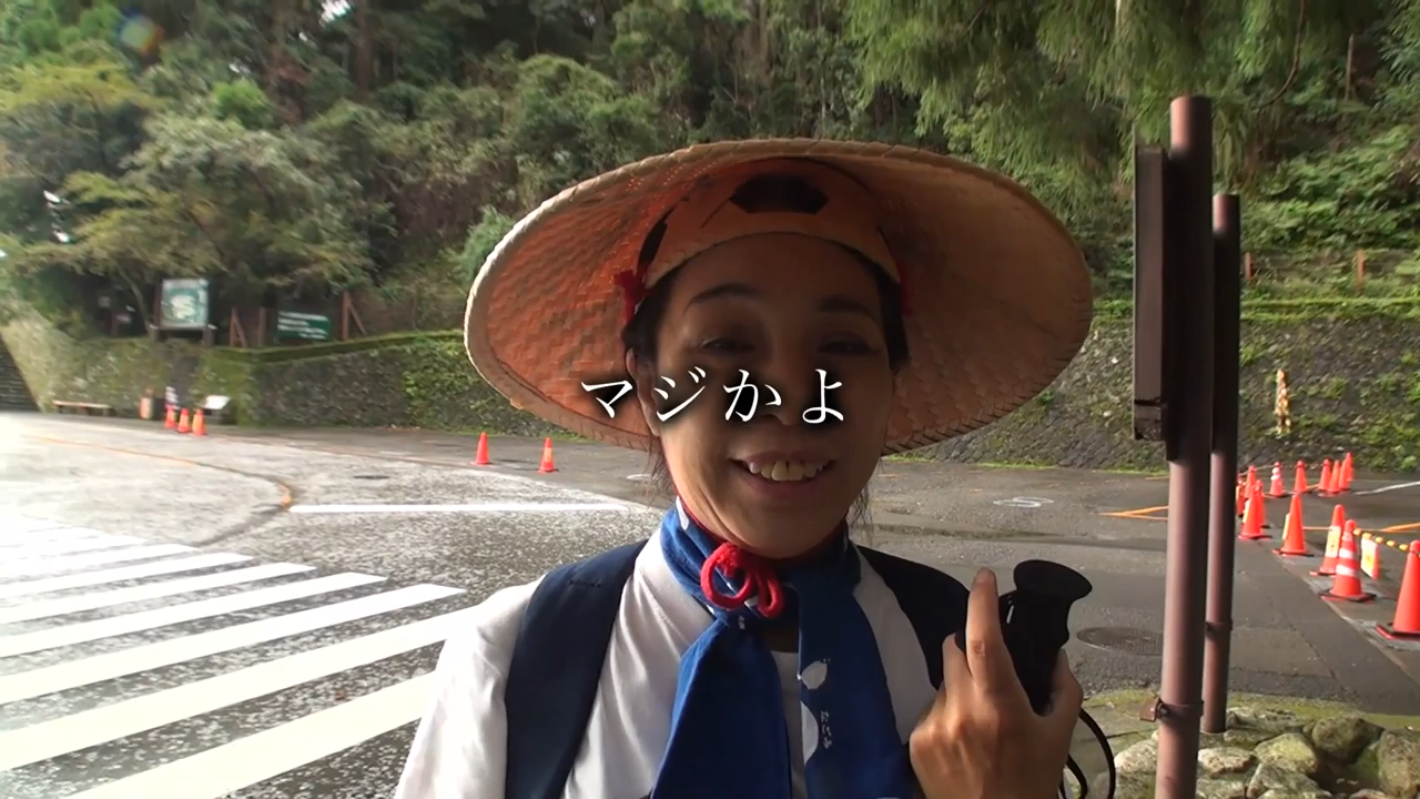 険しい山道に喘ぎ始めるメンバーが現れた。なぜ彼女は、わざわざこの苦しい合宿に参加したのか?……が明らかになる。また「熊野古道ってさあ、飯とか食うとこなさそうじゃん?」と熊野古道をナメている人は見るべきである。(扇松屋龍神 中島英介ディレクター)