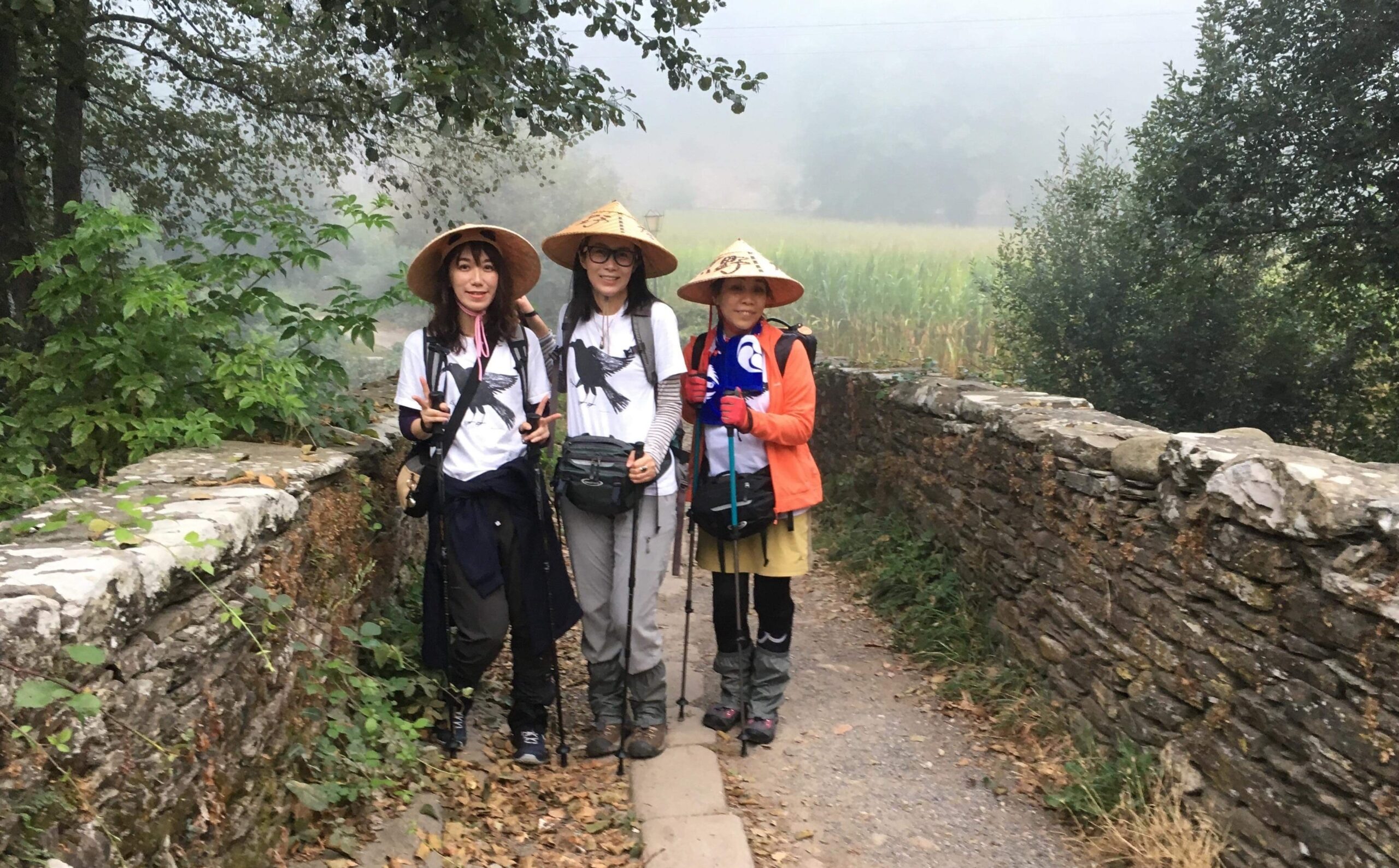 「熊野古道女子部」の合宿2日目が始まった。天気はあいにくの雨。しかしそれは恵みの雨となった。一人の美しい女性のファッションに、奇跡的な輝きを与えたのだ。そして雨にめげることなく歩き続けるメンバーたちの心は、むしろ晴れやかに見える。悪天候でも、想定外の笑いと清々しさがある。熊野古道の魅力が、本当の意味で可視化されてきた。他人の困難と充実を愛する人は見るべきである。(扇松屋龍神 中島英介ディレクター)