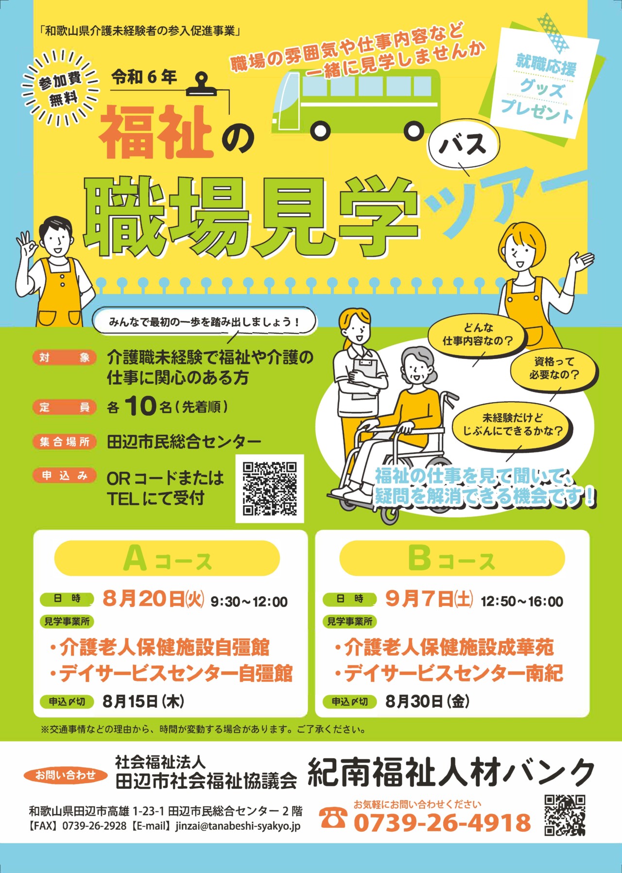 紀南福祉人材バンクの職員と一緒に、介護の職場の雰囲気や仕事内容などを見学しませんか?