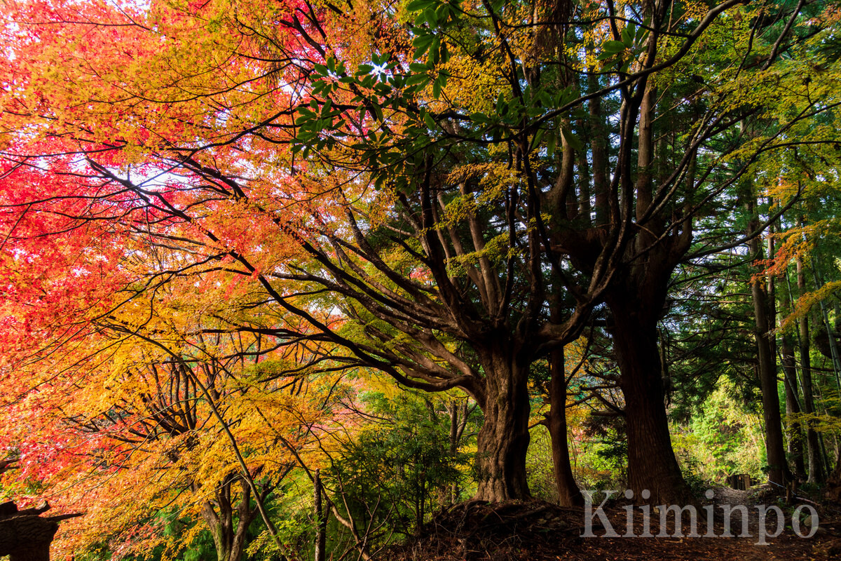 カエデの巨木が紅葉