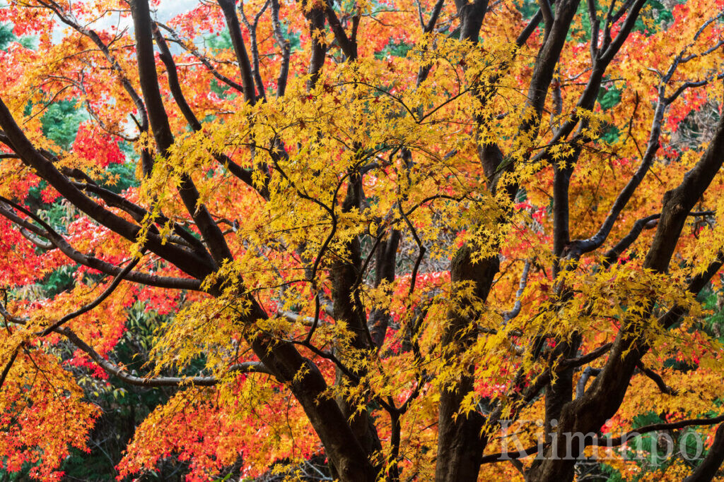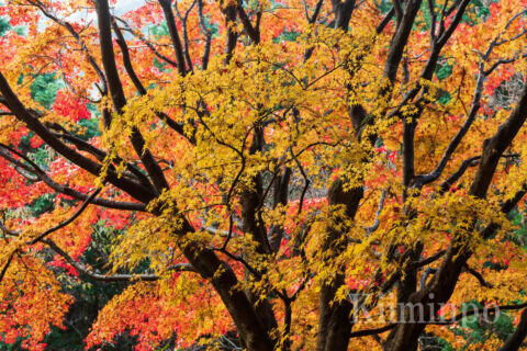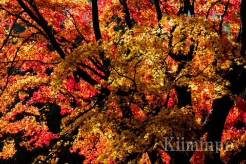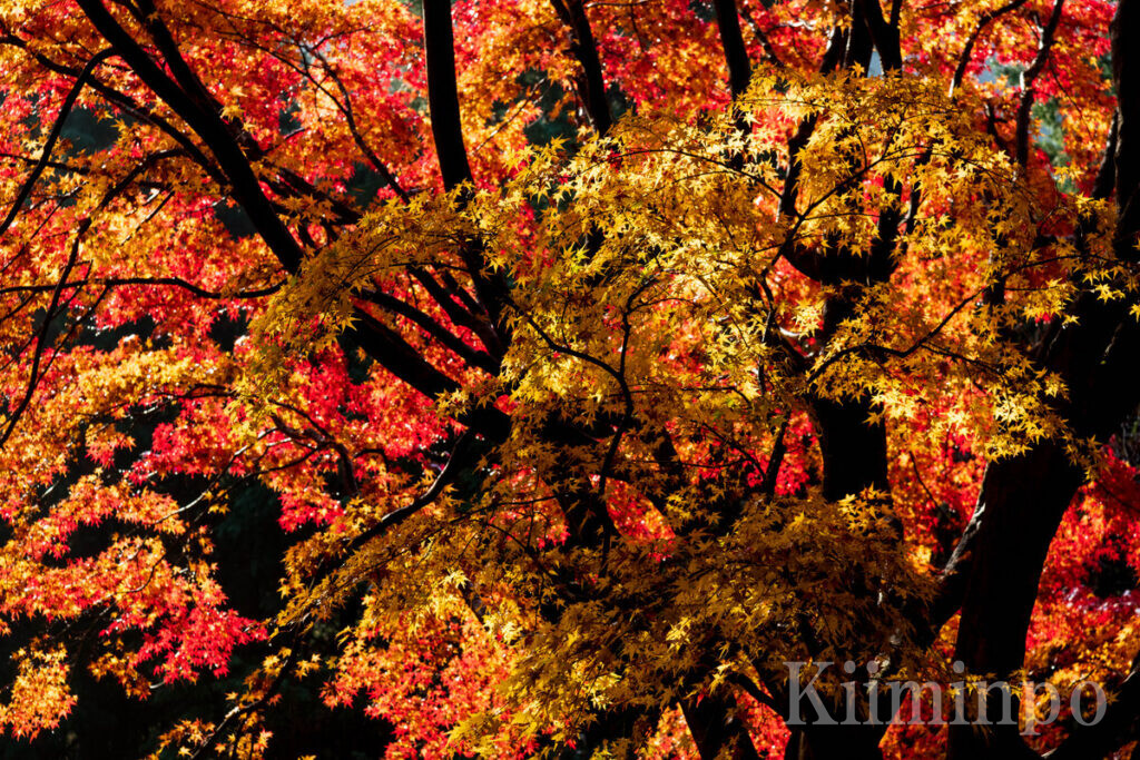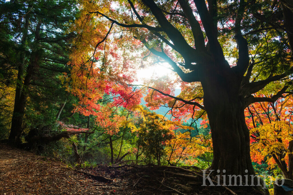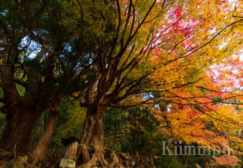 田辺市中辺路町高原の熊野古道沿いにあるカエデの巨木が紅葉の盛りを迎えました。その姿に圧倒されます。