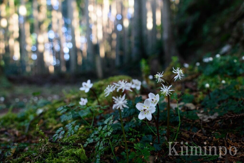 熊野古道沿いで、早春の花「バイカオウレン」と「コセリバオウレン」が見頃を迎えています。バイカオウレンは、梅の花に似た姿から、コセリバオウレンは葉がセリに似ていることから名付けられたそうです。いずれも小さな花です。この季節に古道を歩くときには、ぜひ足元に目をやってください。