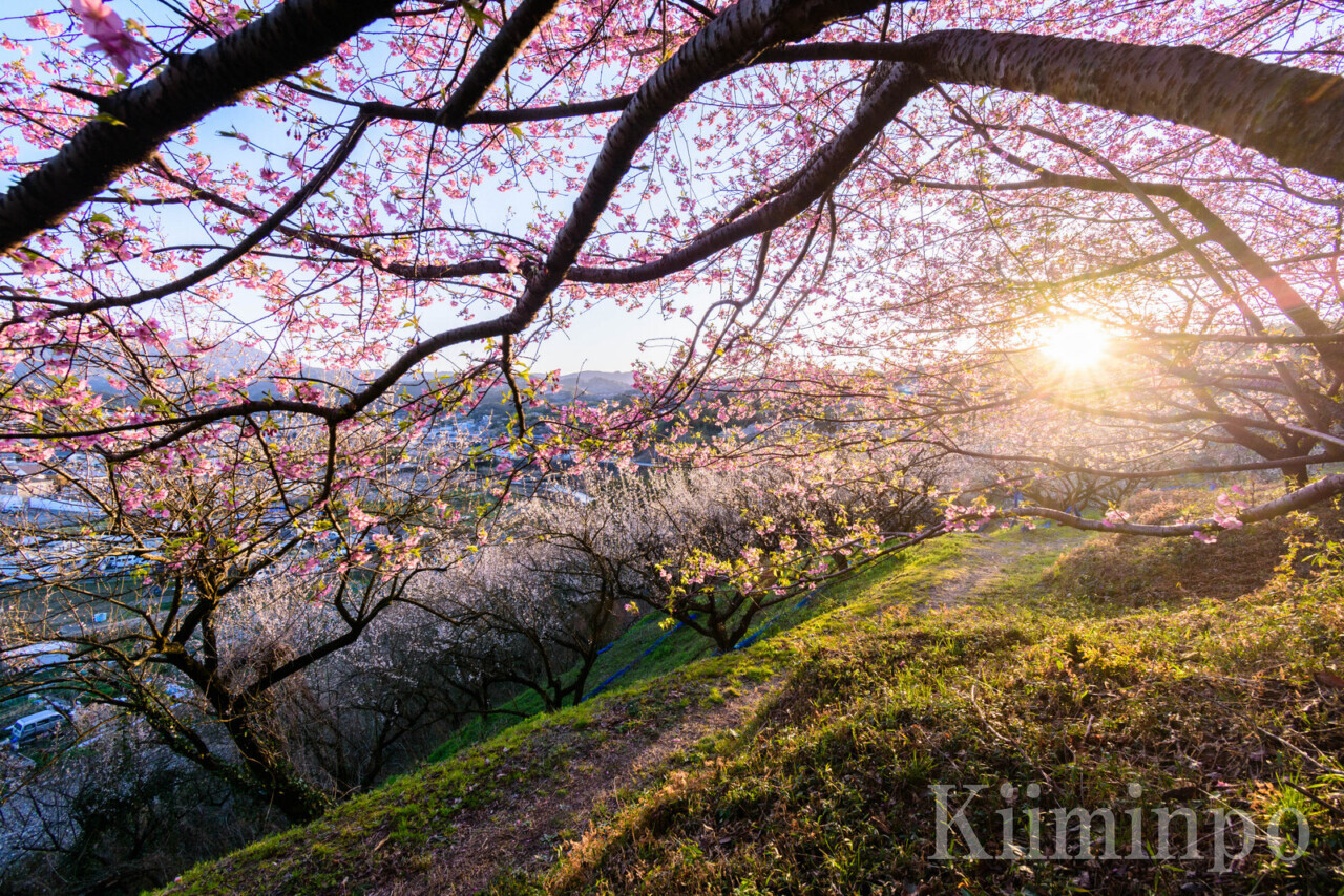 熊野九十九王子の一つ、万呂王子跡は社や石碑はなく、梅畑の中にポツンと文化財を示す標柱が建っているだけです。梅の花が盛りを迎えた暖かい日に訪ねました。