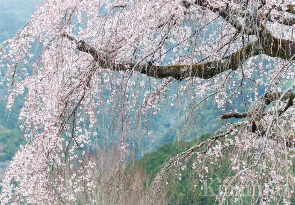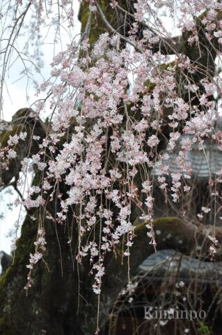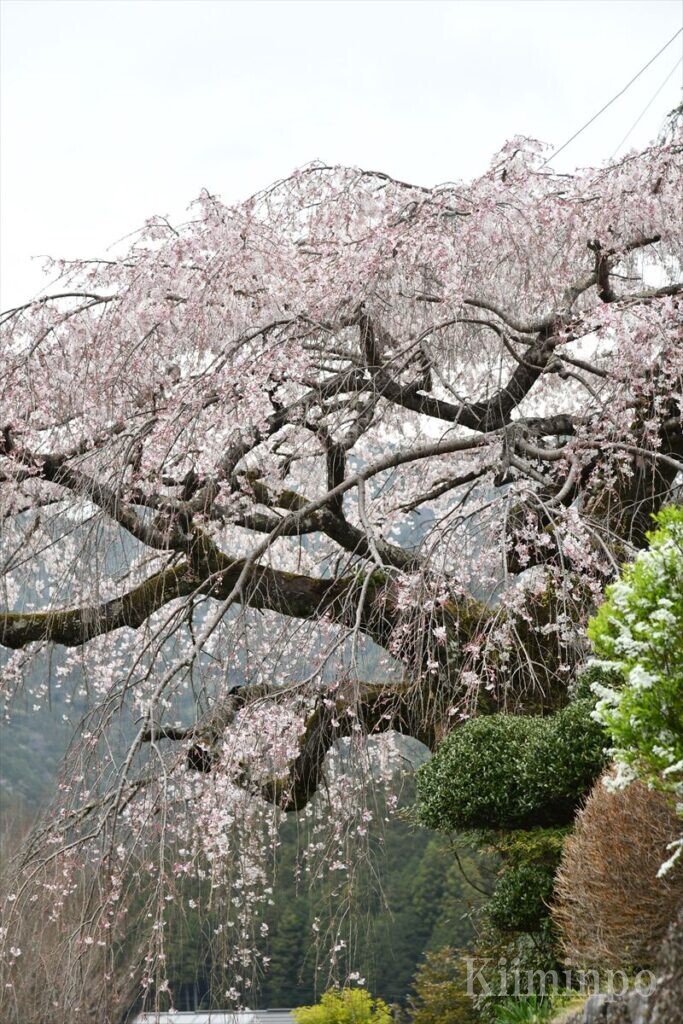 野長瀬家のシダレザクラは、田辺市中辺路町近露の熊野古道沿いにあります。今年は例年より1週間ほど早く満開になりました。