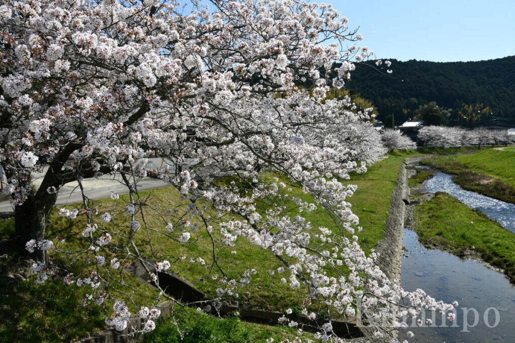 熊野古道・大辺路の「富田坂」の起点になるのが草堂寺。白壁と白い桜が印象的です。