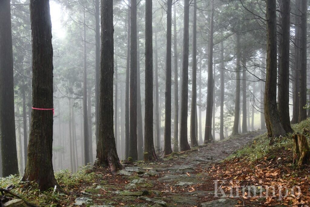 那智勝浦町の那智山から新宮市熊野川町小口に至る熊野古道・大雲取越は天候が崩れると霧が立ち込め、幽玄な雰囲気を醸します。