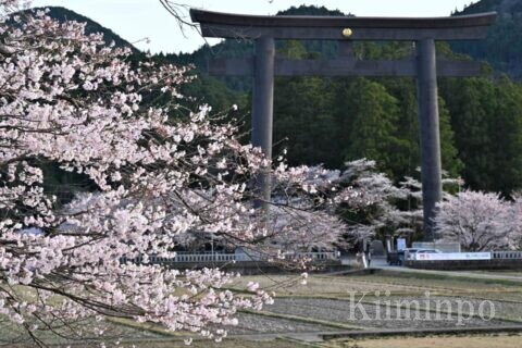 熊野本宮大社の旧社地・大斎原(おおゆのはら)でサクラが見頃を迎えています。