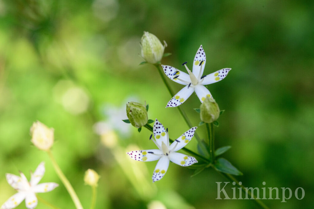 白い花びらにある黒い班紋を明け方の星になぞらえたのが名前の由来。黄緑色の班紋は蜜腺で、写真を撮るときに気をつけないと虫が止まっていることがちょくちょくあります。