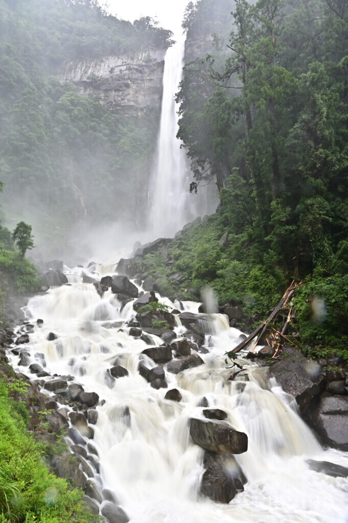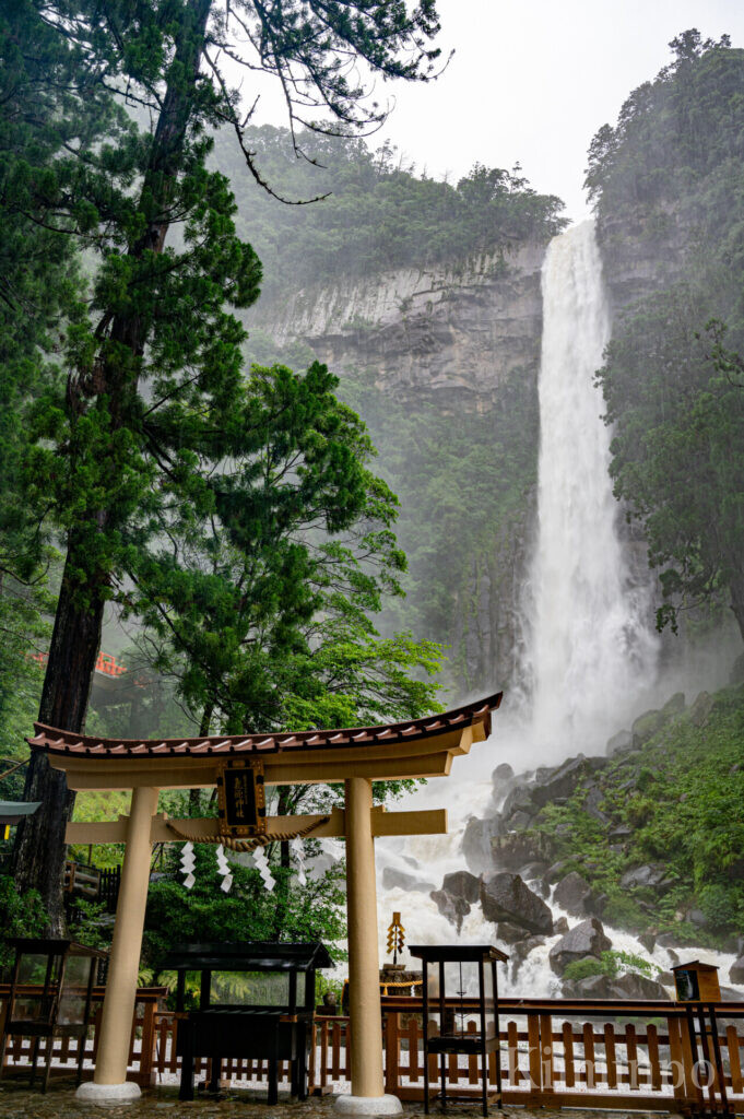 直瀑としては日本一の落差(133㍍)を誇る那智の滝。普段でも見応えのある滝ですが、雨で水量を増した時は轟音が鳴り響き、驚くほどの迫力となります。