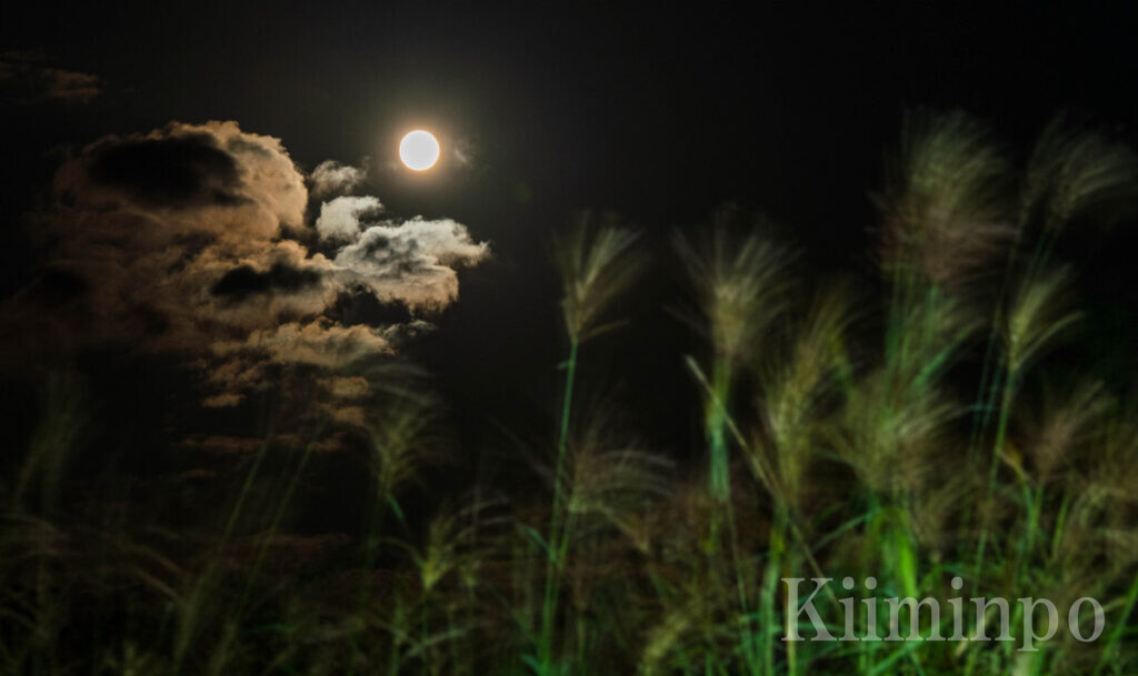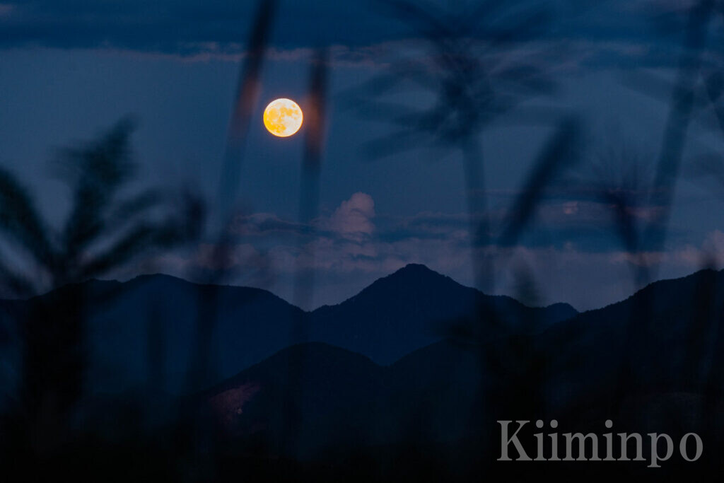 田辺市中辺路町の熊野古道「潮見峠」付近から中秋の名月を撮影しました。