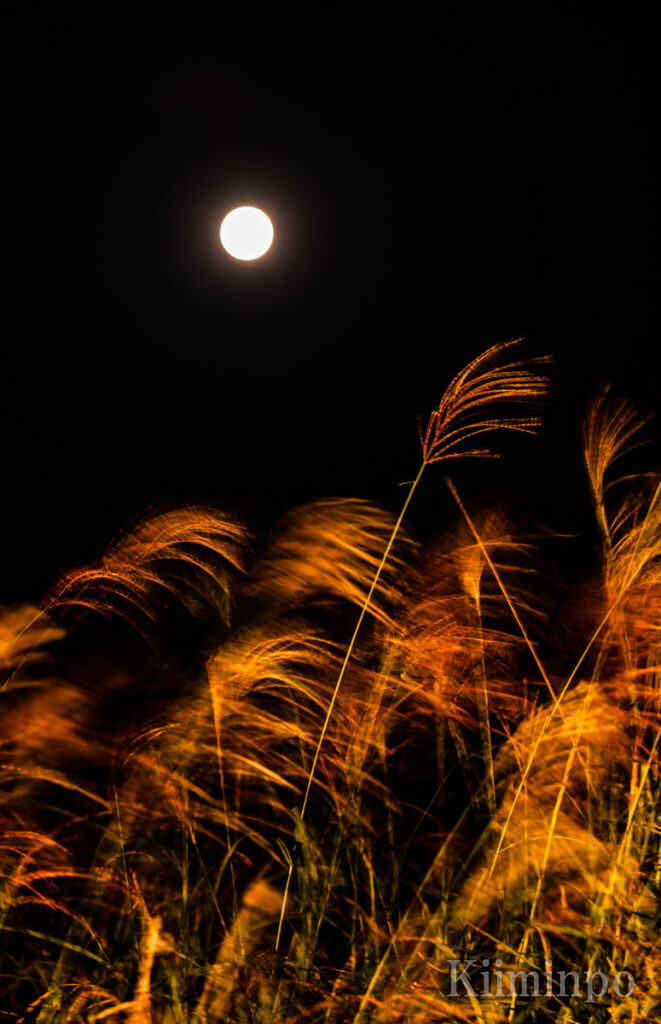 月は東の山から上がり、やがて峠のススキを照らしました。