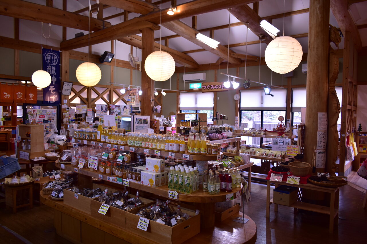 龍神村の特産品であるしいたけやジビエなど多くの特産品を買うことができる道の駅。